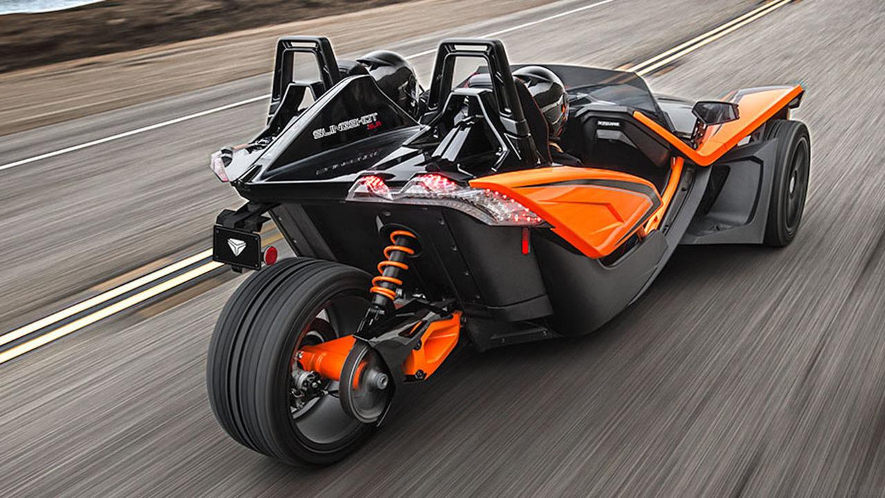 In the US it is called a trike which means that it’s not a motorcycle. The Slingshot is different from other three-wheelers in that the spot that the competition had competitors sitting one regarding the other, Polaris designed their trike to seat them side-by-side, making it really feel more like an automobile than a motorcycle.