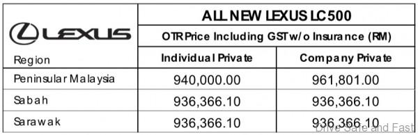 Below is the breakdown of the confirmed On-The-Road selling price without insurance for the all-new Mercedes LC500.